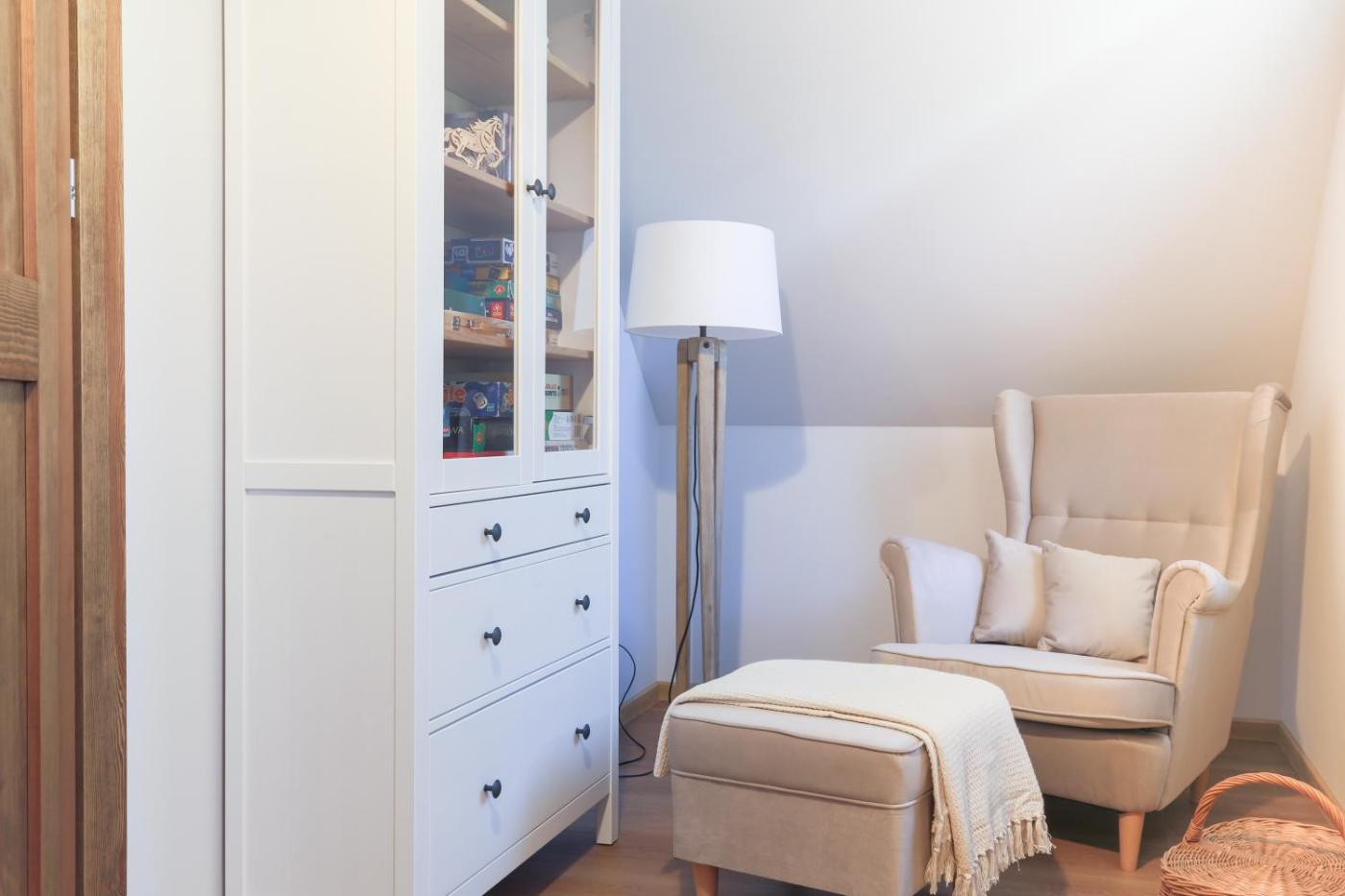 Dom z 3 sypialniami. Guests will have a special experience as the holiday home offers a fireplace. Featuring a private entrance, this holiday home consists of 1 living room, 3 separate bedrooms and 1 bathroom with a shower and a hairdryer. Guests will find a stovetop, a refrigerator, a dishwasher and kitchenware in the well-equipped kitchen. The holiday home also offers a barbecue. The holiday home provides a seating area, a dining area, a wardrobe as well as a terrace with garden views. The unit offers 5 beds. Dom wakacyjny - 8 osobowy. Powierzchnia pokoju ok.: 80 mkw.