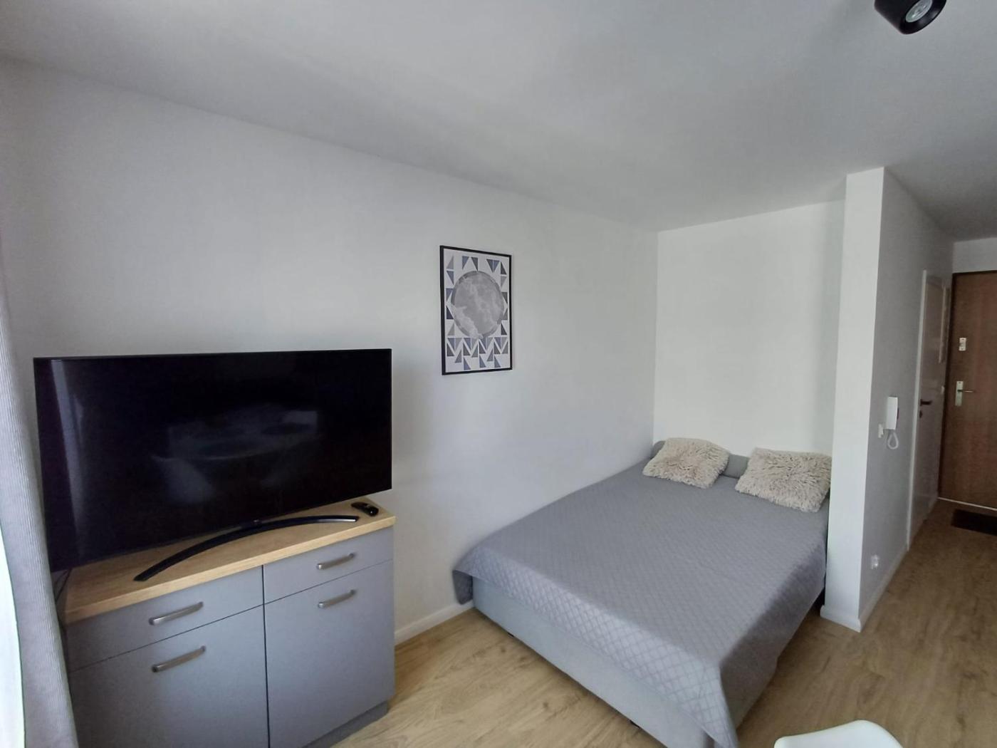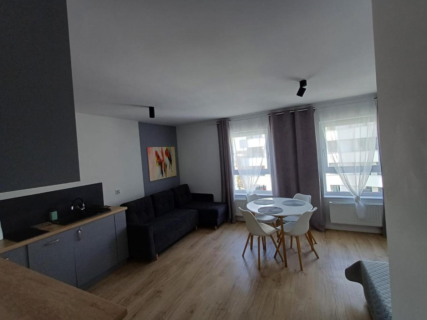 Apartament. This apartment comprises 1 bedroom, a kitchenette and 1 bathroom with a shower and a hairdryer. The well-equipped kitchenette features a stovetop, a refrigerator, a dishwasher and kitchenware. The apartment provides a washing machine, a coffee machine, a dining area, a flat-screen TV, as well as city views. The unit offers 2 beds. Apartament - 4 osobowy. Powierzchnia pokoju ok.: 30 mkw.