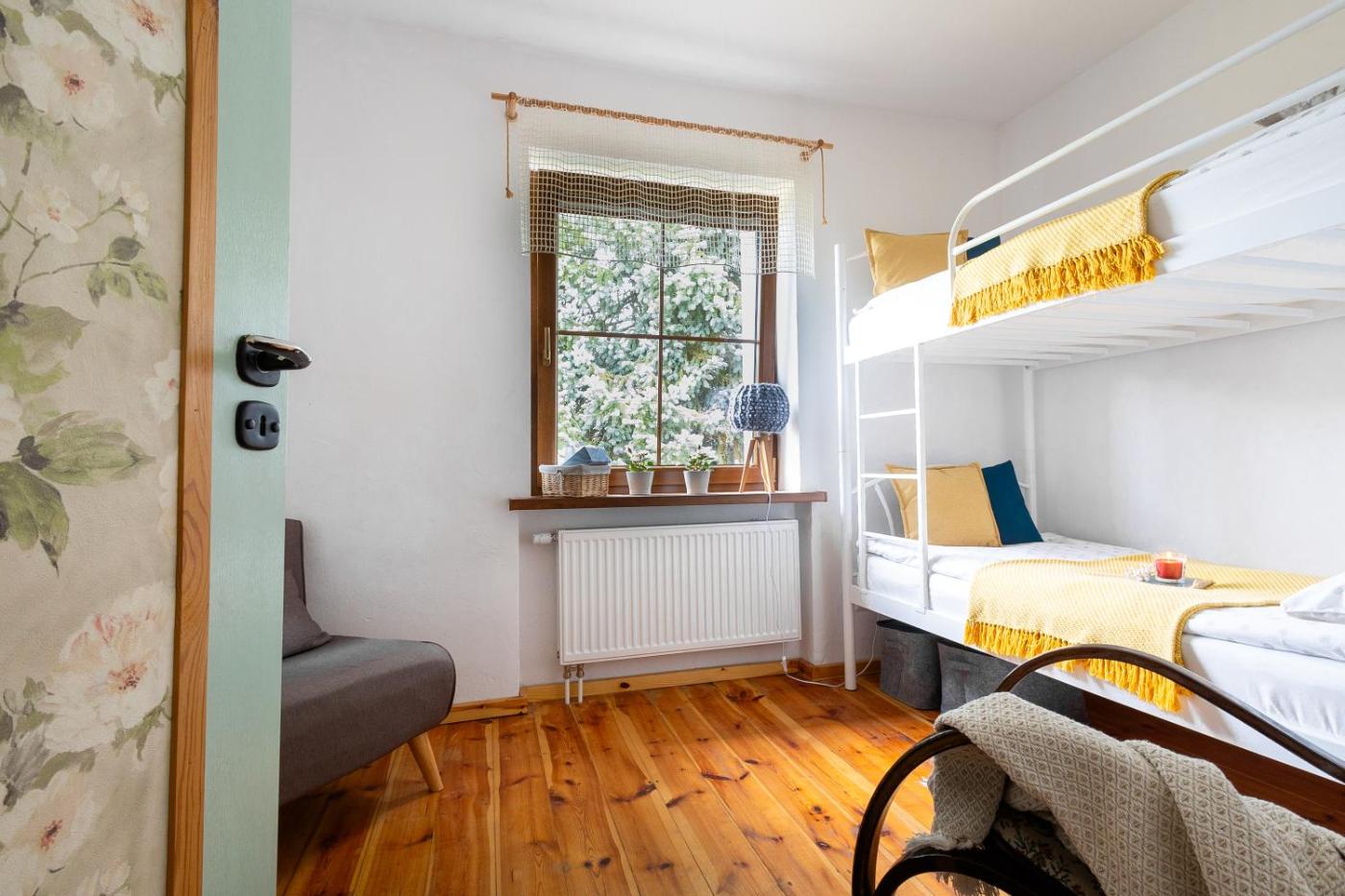 Dom wakacyjny. Featuring a private entrance, this air-conditioned holiday home comprises 1 living room, 3 separate bedrooms and 1 bathroom with a shower and a hairdryer. Meals can be prepared in the well-fitted kitchen, which comes with a stovetop, a refrigerator, an oven and a microwave. The holiday home provides a seating area, a dining area, an electric kettle as well as a terrace with garden views. The unit offers 7 beds. Dom wakacyjny - 12 osobowy. Powierzchnia pokoju ok.: 80 mkw.