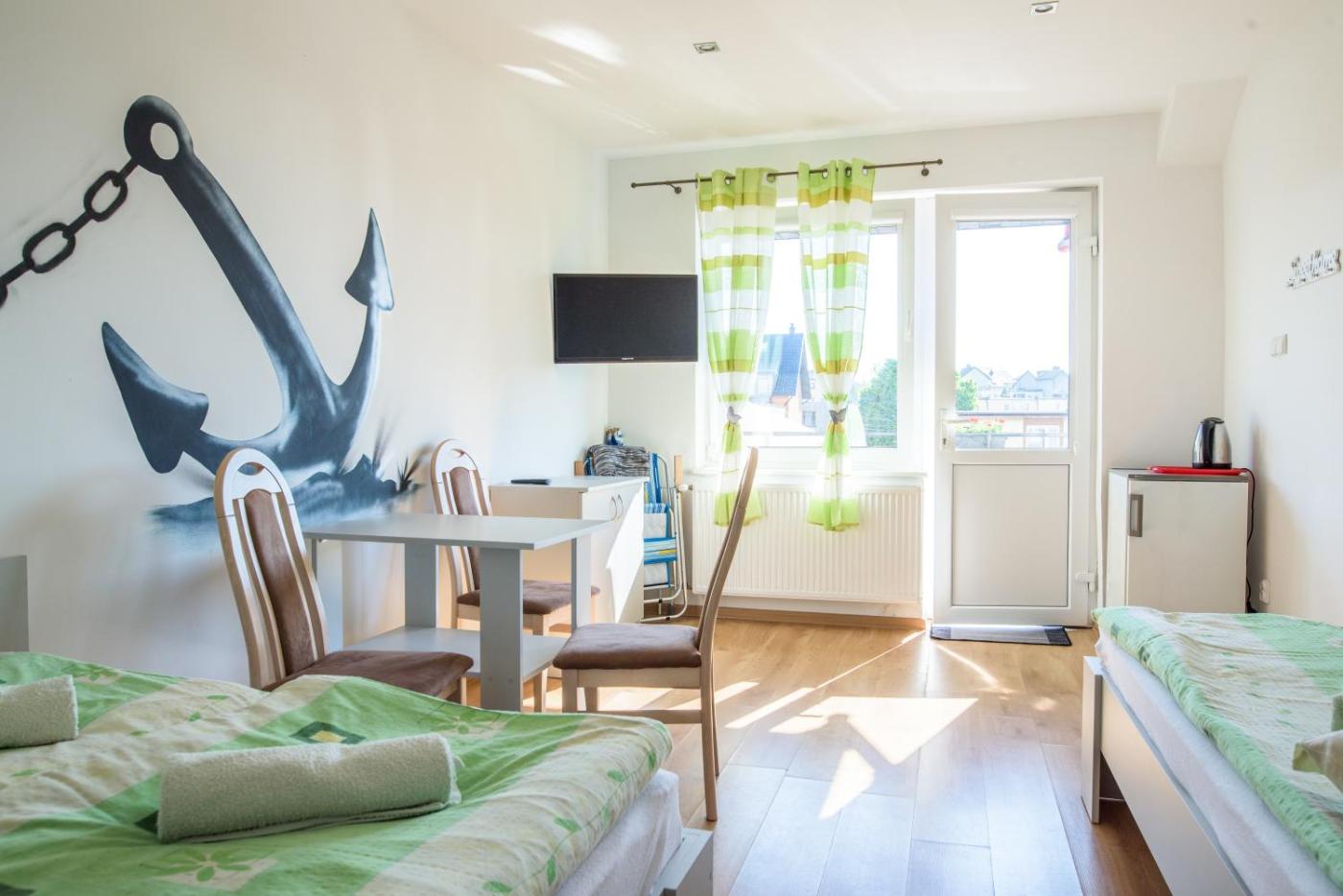 Pokój rodzinny. Guests will find a stovetop, a refrigerator, kitchenware and an oven in the well-equipped kitchen. The family room also has a barbecue. The family room offers a private entrance, a wardrobe, a terrace with sea views as well as a private bathroom featuring a walk-in shower. The unit offers 4 beds. Rodzinny - 5 osobowy. Powierzchnia pokoju ok.: 36 mkw.